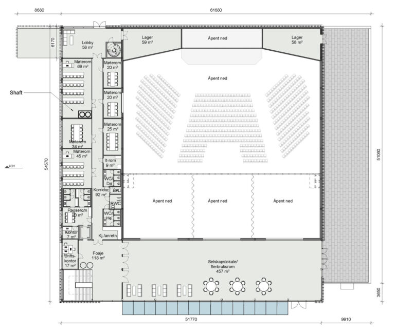 Årvoldveien in the municipality of Moss - a midsize conference center with a gross area of appr. 5000 m2. The general permit was awarded 3.11.2023, and construction work is due to be finished in Q2 of 2025.
